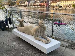 Beautiful garden directly on the Rhine with various sculptures, e.g., by Peter Lenk, Carstten Kretschmar, Willi Hofmann, etc., as well as over 65 pots with roses, rose bushes, flowers, shrubs, etc.