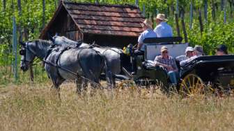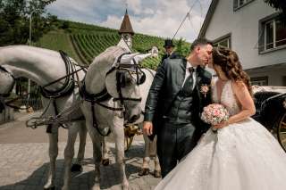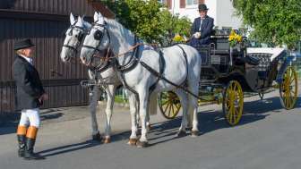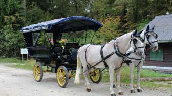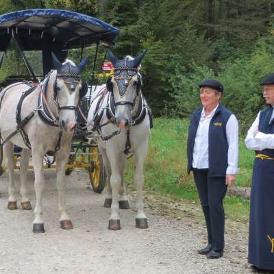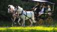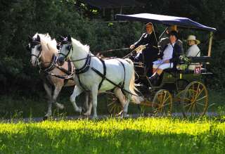 We ride with thoroughbred Kladruber horses, beautiful harnesses made of genuine leather and faithfully reproduced coaches with disc brakes.