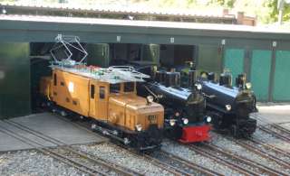 The track gauge is 7 1/4 inches. Our engines are capable of carrying 30 to 60 passengers with ease. Different locomotives run alternately, depending on the volume of traffic.