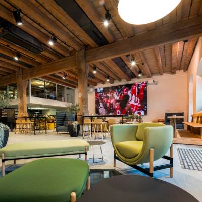 Various opportunities to exchange ideas with each other in a relaxed atmosphere, but also with other "circles" - sport and culture, business and politics, sport or culture "among themselves". The 60 or so bistro seats are very different - traditional tables for two or more guests, high tables that can also be used as a bar or workstation, a corner with upholstered groups in different variations, the "regulars' tables" made of old oak wood and several "séparées" for confidential discussions, presentations or negotiations invite you to linger. On the 20 m2 LED wall of the highest quality, you can read the online newspaper Bock 24 and Schaffhausen 24 with news from the region, Switzerland and around the world. Leading sports clubs jointly operate their fan store; tickets and season tickets can be purchased conveniently around the clock in the city center. Athletes from a wide variety of sports meet up and have contact with fans in "our little town". And the coworking offer: