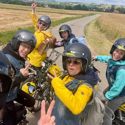 For example, start with us in Gächlingen in the canton of Schaffhausen and discover the beautiful cycle paths through the vineyards of the Blauburgunderland or the famous mountain race track on the Oberhallauerberg. A detour to the Rhine Falls or other sights round off the Töffli Tour. On request, our tour guides will accompany you to the most beautiful places in the region.