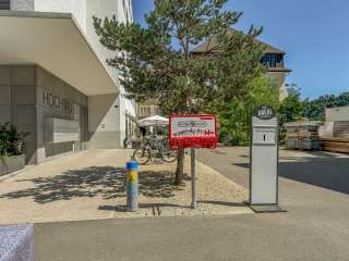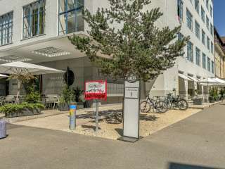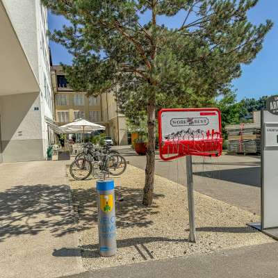 There is a public bicycle pump and tools at the Industrieplatz above the Rhine Falls.