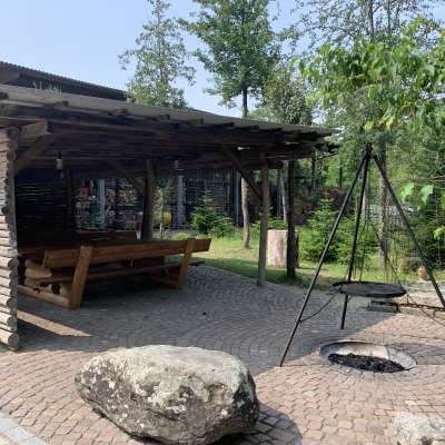 Covered seating area at the Engeweiher forestry magazine with barbecue area for 40 to 50 people.