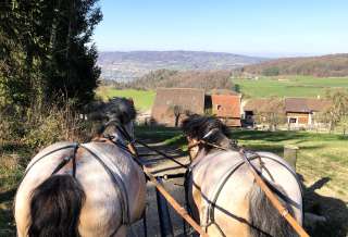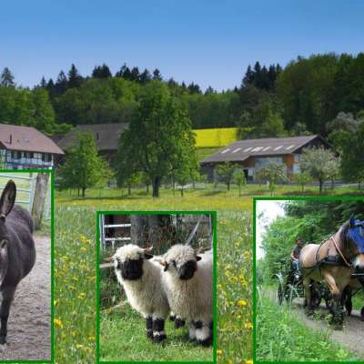 Horses, donkeys, Valais black-nosed sheep, Kune-Kune pigs and cats make the farm a lively place where you can experience farming up close. Children can groom donkeys, take them for walks through the forest or help look after the animals. The woolly sheep love to be cuddled, while the pigs provide some light-hearted moments. A special experience is a carriage ride with the impressive cold-blooded horses, which opens up impressive views.