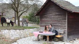 Geniesse das schöne Landleben und nimm Dir Zeit und Musse im Miteinander. Der Esel trägt das Picknick mit feinen regionalen Produkten zum idyllischen Rebhüsli. Geniesse eine erholsame Pause am Fusse der Hallauer Bergkirche an schönster und ruhiger Lage umgeben von Rebbergen.