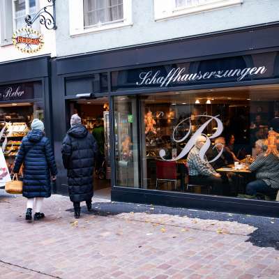 The original Reber Schaffhauserzungen and other excellent specialties have been produced here since 1896. We also spoil you with coffee, tea and delicious cakes or lunch - on our terrace in summer.