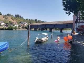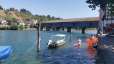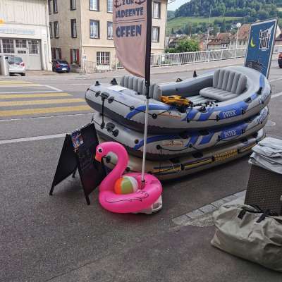 We'll send you fully equipped on your adventure along arguably Europe's most beautiful river section... Treat yourself to a break and relax with friends or family as you leisurely float down the Rhine. The journey starts from the picturesque town of Stein am Rhein, passes beautiful and natural bays, goes by Switzerland's oldest and most beautiful wooden bridge in Diessenhofen, and continues down the Rhine to the lovely Munot city of Schaffhausen. Rental: Whether it's a swimming noodle, a pink flamingo, stand-up paddles, or the complete package with an inflatable boat, life jackets, dry bag, and return of materials at the destination. We'll equip you and turn you into the ideal Rhine pirate. If you bring your own inflatable boat, we'll gladly inflate it for you on-site with a compressor. We'll transform you from a teddy bear into a sea bear!