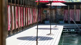 Abschalten vom Alltag und der Seele Gutes tun. Sonnenschein, kühles Nass, spritzige Getränke und Gaumenfreuden. Energie tanken und gemütliche Abendstunden in ausgelassener Stimmung geniessen. Saisonale, regionale Mittagsmenüs, täglich frisch. Geschichte Seit 1870 stellt das grosse Schaffhauser Holzbad seinen Bug in die Rheinströmung unter dem Munot. Verantwortlich für den Bau des grössten noch erhaltenen Kastenbades der Schweiz (es soll gar die älteste Flussbadeanstalt Europas sein) war Stadtbaumeister Johann Gottfried Meyer. Durch die Stauung des Kraftwerkes ist der Pegelstand im Bad konstant. Schwimmer sollten jedoch beachten, dass die Strömung des Rheins bei grösserer Wassermenge schneller wird.
