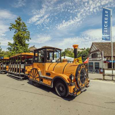 Take the Rhyfall Express from the Burgunwiese parking lot in Neuhausen to the Rhine Falls and experience Europe's largest waterfall along the Rhine Falls basin. The one-way trip takes approx. 10 - 15 minutes.