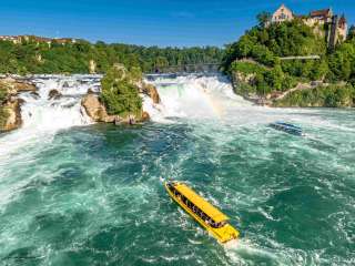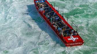 Our highlight: the rock trip - an unforgettable experience in the middle of the Rhine Falls. Climb onto the rock in the center of the water masses and experience the full force of the Rhine at close range. No one gets any closer!