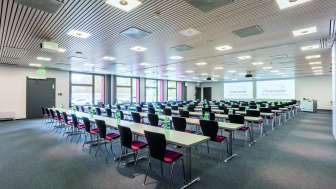 The 26 seminar rooms with different capacities are equipped with state-of-the-art presentation technology and flooded with natural light. They provide the perfect setting for an informative seminar, a successful conference or an exciting presentation. Our two elegant ballrooms make dreams come true and are the perfect venue for business and private celebrations. They offer space for up to 450 people. We are also happy to organize your banquet in the Restaurant Thaigarden, in the Riveralp, in the bowling alley or in the Autoatelier.