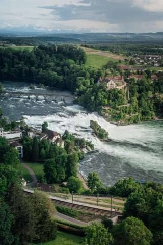 Enjoy a breathtaking view 136 meters above the Rhine Falls!