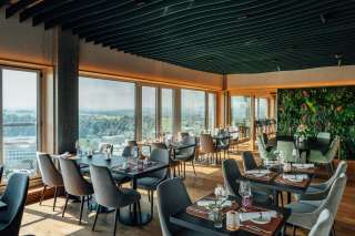 Im RIVI Skyfall Restaurant wird dir 136 Meter über dem beeindruckenden Rheinfall eine spektakuläre Kulisse geboten. Mit einer Kombination aus erstklassiger Gastronomie, atemberaubender Panoramaaussicht und moderner Architektur, ist das RIVI Skyfall der perfekte Ort für ein Dinner, Lunch, oder eine Feier.
