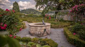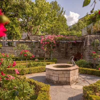 The approximately 300 square meter rose and peony garden was once magnificently laid out by the Swiss "rose father" Dietrich Woessner as a style and test garden. The roses were replanted by Rosenfreunde Schaffhausen in 2009. Just below the roses, over 90 different types of peony have been growing since 2014. Wild species, from which numerous varieties have been bred, grow right by the garden entrance. There are also ten varieties that were bred in Ticino by the Englishman Sir Peter Smithers, who died in 2006.