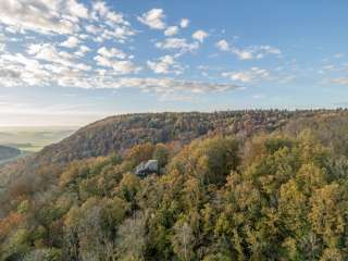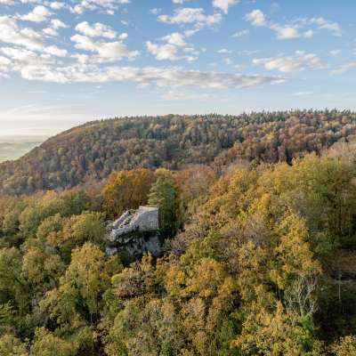 Am Südhang des Rossbergs in Osterfingen, auf einem schroffen Bergsporn, liegt die Burgruine Radegg.