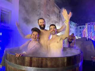 The Schaffhausen Sauna Marathon is a unique annual sauna and adventure festival in Switzerland. During this event, numerous saunas and hot water pools are set up in the historic old town, on the banks of the Rhine, and at other picturesque locations. Participants—alone, in pairs, or in teams—visit as many locations as possible within a set time frame. The focus is on socializing, enjoyment, and shared experiences, not competition. The event is complemented by atmospheric opening and closing ceremonies, cultural highlights, and culinary and wellness-related program items. The Sauna Marathon combines wellness, exercise, and community in the impressive setting of Schaffhausen on the Rhine.
