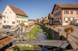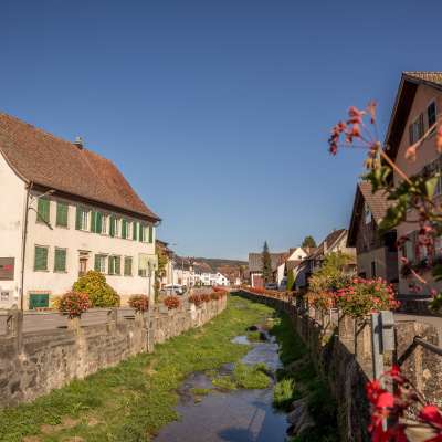 The village center is charming with its half-timbered houses and is characterized by the village stream that flows through the middle of Schleitheim, which is beautifully decorated with geraniums in the summer and Christmas trees during the Advent season.