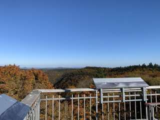 Originally built in 1872, the 40-foot-high wooden tower collapsed in 1894 and was replaced by an iron tower in 1909 in the ruins of the Schleitheim Randenburg. Today 896 m above sea level.