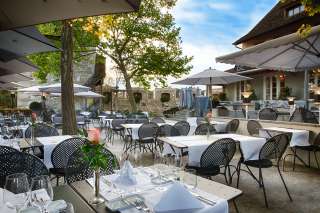 In the daytime restaurant "Castello", the former Bannersaal with its cozy fireplace and large terrace creates an atmospheric setting. Enjoy delicious specialties with a focus on regionality and seasonality in a setting steeped in history. In the "Bleulersaal" you will be spoiled with a variety of culinary creations in the evening. The Rhine Falls illuminated in the evening rounds off the experience.