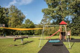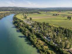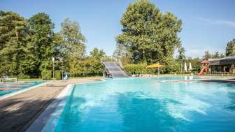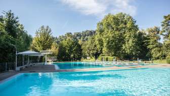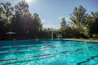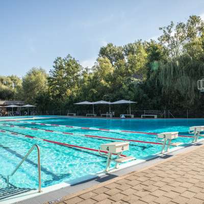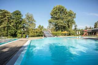 Located on the same grounds as the Thurauen Nature Center, Badi Flaach features a 25-meter swimming pool with a diving tower, a children's paddling pool with a water slide and sun sail, and expansive sunbathing lawns directly by the Rhine. The swimming pool is situated right next to Camping Flaach. It also offers wheelchair-accessible pool access with a pool lift, generously donated by the Swiss Foundation for Children with Cerebral Palsy.