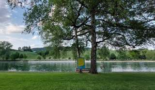The Badi Rodenbrunnen is idyllically located on the banks of the Rhine and combines the classic outdoor pool feeling with a natural river pool. You can access the water directly via steps or a small pebble beach and relax in the sun on the large sunbathing lawn. The facility offers a non-swimmer and children's paddling pool, a diving area with a 3-meter board, and a variety of leisure activities such as beach volleyball, table tennis, and a barbecue area.