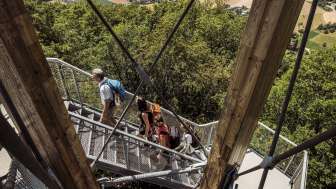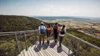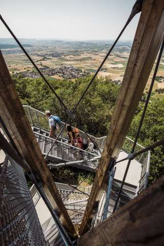 This had a significantly longer lifespan. It served its purpose until 2014. However, it had become so dilapidated that it had to be replaced. The current, architecturally and technically unusual tower was inaugurated in November 2014. From the 19-metre-high platform, visitors can enjoy an extraordinary panorama from the Vorarlberg Alps, across the mountains of eastern and central Switzerland to the peaks of the Bernese Oberland and on to the heights of the Black Forest. The unobstructed view of the lovely Klettgau landscape and the forests of the Randen is also breathtaking.