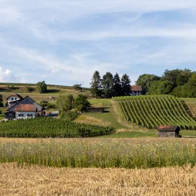 Our 11.3-hectare family business is located at the southernmost point of the canton of Schaffhausen. The 0.7ha of vines are lovingly cultivated and cared for by hand all year round by the 3rd generation. We also press our wines ourselves in our own cellar with just as much love.