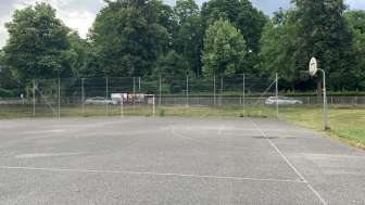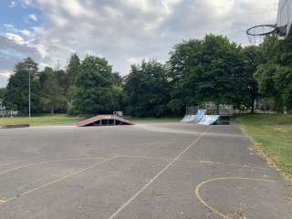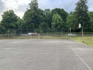 Right next to the skatepark, there is also a hard court with basketball hoops and a soccer goal.