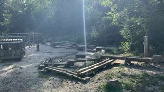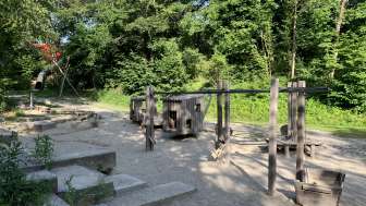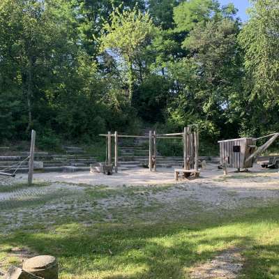 Children of all ages can really let off steam in the playground at the Dreispitz complex. The spacious facility is surrounded by greenery. The playground is equipped with a ropeway, a slide, a pond, a fountain with a watercourse and a large sand play area. There is also a picnic area with a seating arena and fire pit right next to the playground.