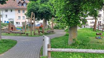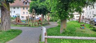 The Falken playground is situated in the heart of the town, between Hintergasse and Wettigraben. Besides various play elements like a net swing, a large mill game, and a baby swing, you'll also find tables with benches.