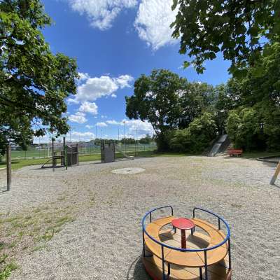 Playground with lots of exciting play elements for all ages: slide, play tower, climbing frame, children's carousel, sand area, table tennis table and much more.