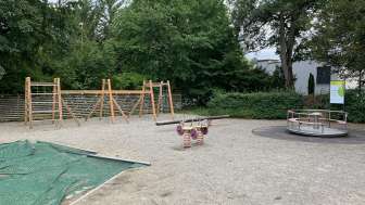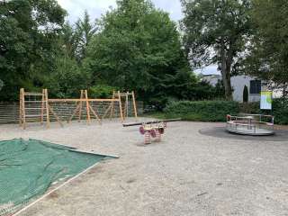 A climbing tower, seesaws, a carousel, a swing, a ropeway, ping pong tables, a waterhole with a stream and a large meadow make children's hearts beat faster.