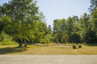 Children can enjoy themselves on the wooden climbing frame and swing. Right next to the playground, there is also a barbecue area for grilling and tables for picnicking.