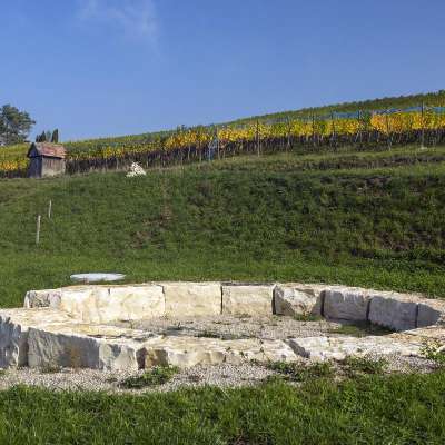 In earlier times, the basin served to collect drainage water from the vineyards. Today, this spot, built from warm limestone, offers hikers a moment of relaxation, peace, and tranquility.