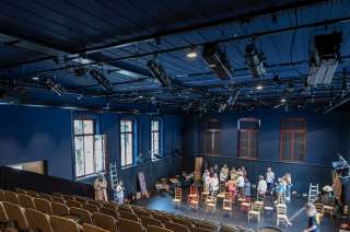 In 2021, the over 100-year-old gymnasium was converted into a flexible stage for up to 150 visitors, fulfilling the long-cherished wish of the independent theater scene for a space in which almost anything is possible.