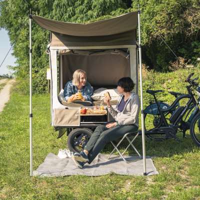 Starten Sie Ihre nächste Veloreise und haben Sie Ihr Bett stets dabei. Mit dem Velocamper ist genau das der Fall. Denn im eigens dafür konstruierten Cargo E-Bike mit integriertem Zeltaufbau sind Sie bestens ausgerüstet für eine abenteuerliche Reise durch die Ostschweiz. Erleben Sie eine unvergessliche Velotour, vorbei an schier endlosen Rebhängen, malerischen Landschaften und schmucken Dörfern.