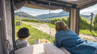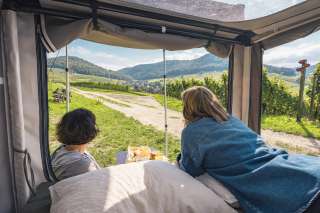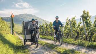 Start your next bike trip and always have your bed with you. That's exactly the case with the bike camper . Because in the specially designed cargo e-bike with integrated tent structure, you are perfectly equipped for an adventurous trip through Eastern Switzerland. Experience an unforgettable bike tour past seemingly endless vineyards, picturesque landscapes and pretty villages.