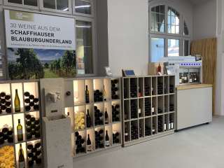 Discover and taste wines from the Schaffhausen Pinot Noir area. In our Oenomat there are up to eight wines to choose from, which are changed regularly. The wines are always kept at the perfect temperature and the system protects against oxidation and loss of quality.