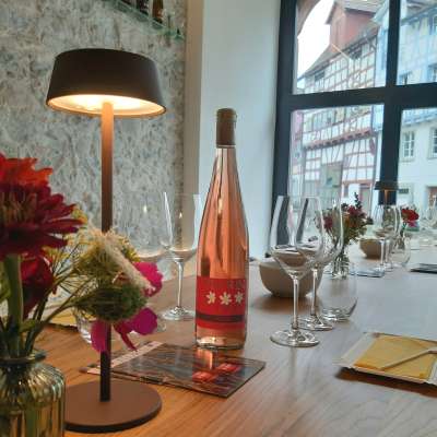 We cultivate 3.5 hectares of vineyards below Hohenklingen Castle. Steep south-facing slopes, 430-500 meters above sea level. Our range of varieties includes the traditional Pinot Noir and Riesling-Sylvaner as well as the international classics Pinot Gris, Chardonnay and Rhine Riesling. New varieties are also added. Our wines bear our signature. We cultivate the vineyards. We press the wines. We take care of the marketing. Our motto: "Grown here - pressed here - everything from a single source"