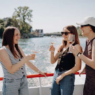 Degustiere auf der Fahrt von Schaffhausen nach Stein am Rhein die köstlichen Tropfen aus dem Schaffhauser Blauburgunderland an Bord der URh und geniesse dazu eine der schönsten Strom-Schifffahrten Europas.