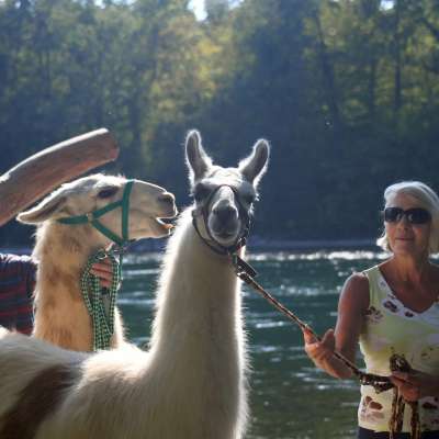 We offer walks with our llamas, animal-assisted coaching, experiential education & activation programs for care homes, schools, and foundations, as well as an exciting range of courses (e.g., ice bathing & breath training with the Wim Hof Method, mental training for athletes, outdoor survival experiences, singing bowl and painting courses, self-assertion for children and adults, Taiji among llamas, ...).